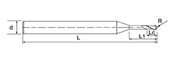 | Nu. | Diametrul D | Unghiul R R | Lungimea flautului Lc | Lungimea efectivă L1 | Lungimea totală L | Diametrul tijei d | Număr de lame F |