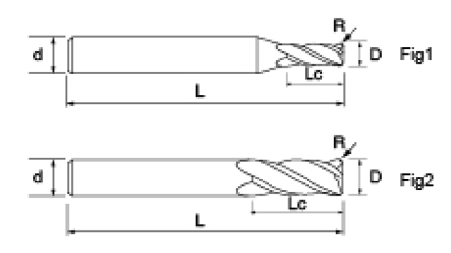 | Seria de scule | Diametrul | Raza | Raza de colț | Lungimea flautului | Lungimea efectivă | Lungimea totală | Diametrul tijei | |||