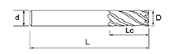 | Seria de scule | Diametrul | Raza | Raza de colț | Lungimea flautului | Lungimea efectivă | Lungime totală | Diametrul tijei | |||
