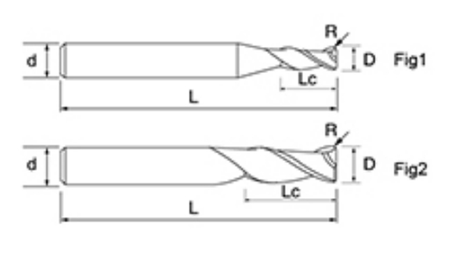 | Seria de scule | Diametrul | Raza | Raza de colț | Lungimea flautului | Lungimea efectivă | Lungime totală | Diametrul tijei | |||
