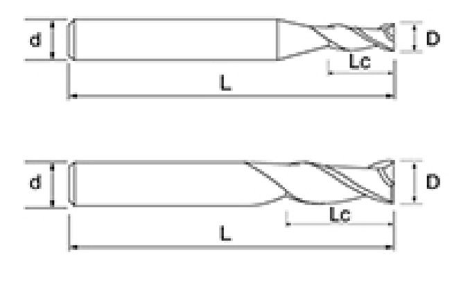 | Nu. | Diametrul D | Lungimea flautului Lc | Lungimea totală L | Diametrul tijei d | Număr de lame F |
