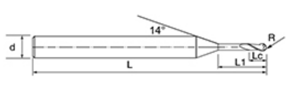 | Nu. | Diametrul D | Unghiul R R | Lungimea flautului Lc | Lungimea efectivă L1 | Lungimea totală L | Diametrul tijei d | Număr de lame F |